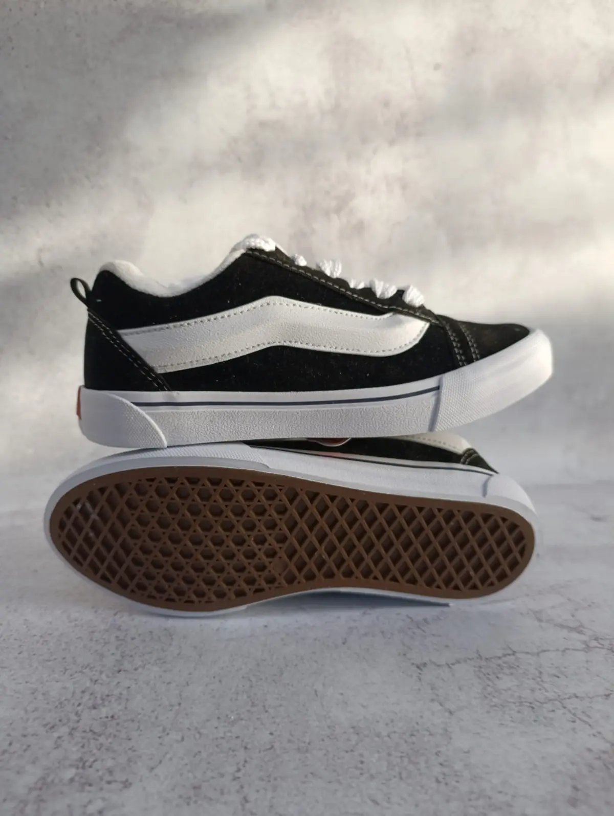 Estas zapas retoman la estética exagerada de los años 90 con una silueta de perfil bajo completamente confeccionada en suede. Este modelo presenta una lengüeta hinchada, cuello acolchado y el clásico Sidestripe™ reformulado en un llamativo diseño 3D de diamante, resaltando su inspiración en la Old Skool original.
